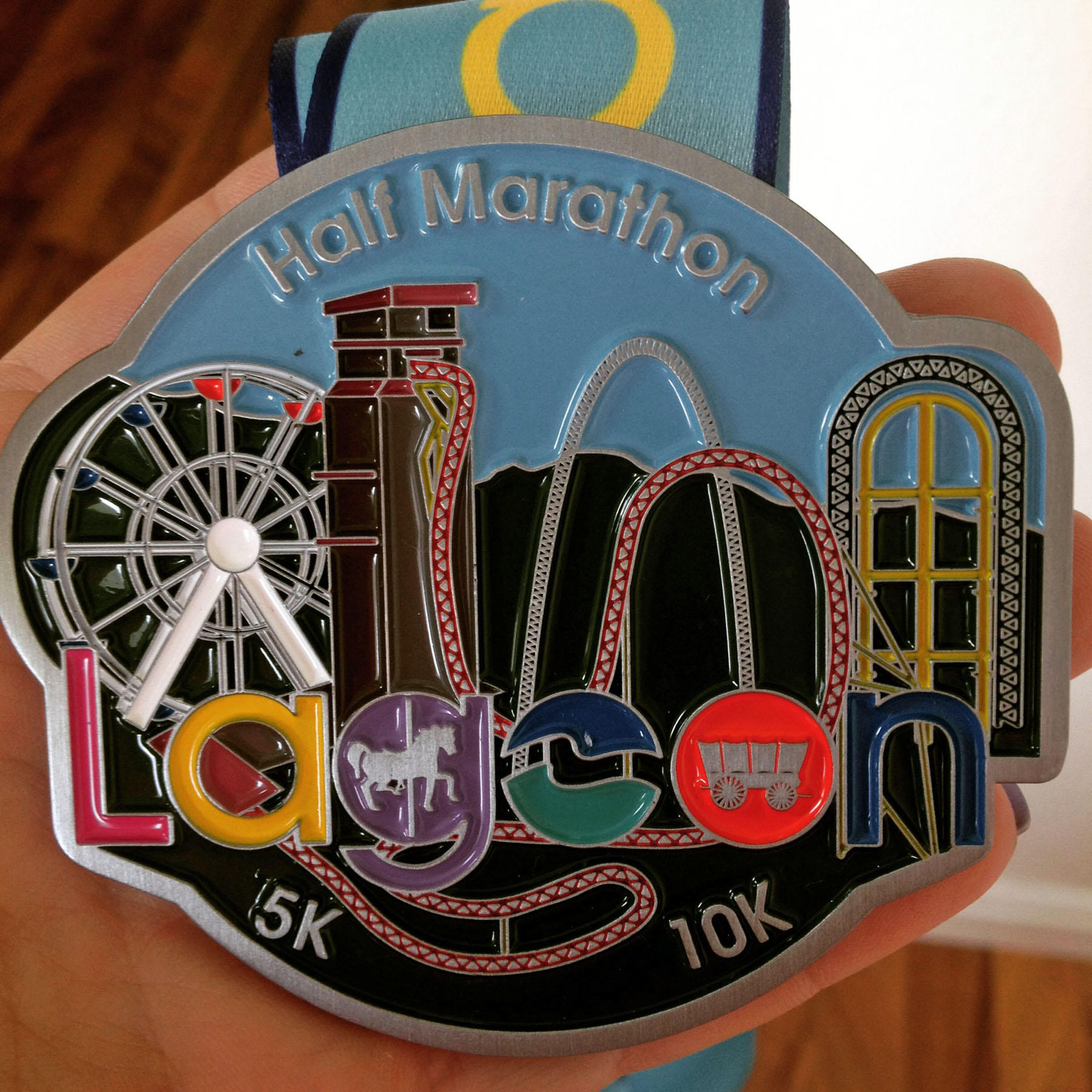 Funny story, we paid for these but not everyone did. But everyone seemed to get one and since Jeremiah was running with me (instead of me running with him) there were not enough left for us to get ours. So we waiting for them to come in the mail. I may have sassed an innocent volunteer when he said they were out. I may have told him that I just ran 13.1 miles and I wanted my finisher medal like a little brat. He should have sassed back stating that we should have run faster but he was nice and explained that they would be shipped free of charge, of course. So when it came in the mail, I may have proudly displayed it on my neck for the remainder of the day. Maybe. 😉
