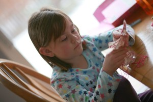 8. The kids got to work on some cool crafts they received for Christmas. Mazie is working on a stuffed, furry bear.