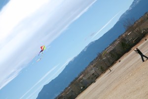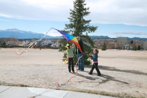The kids enjoyed chasing the kite for a little while. The kite just didn’t want to actually stay in the sky. So they went right to the park and the rocks and forgot all about the wind and the kite…for a little while.