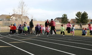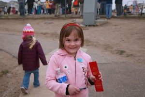 Then she lined up with the other first grade girls for the 200 m…(her official time 1 minute 3 seconds).