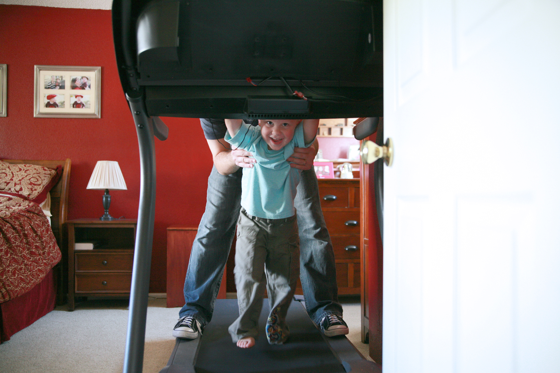 Jeremiah and I decided to get a treadmill. After putting it together, Jacob wanted to test it out. Jeremiah stood (and held on to him) behind him while trying out “level 6” on the speed. I think his face says it all…