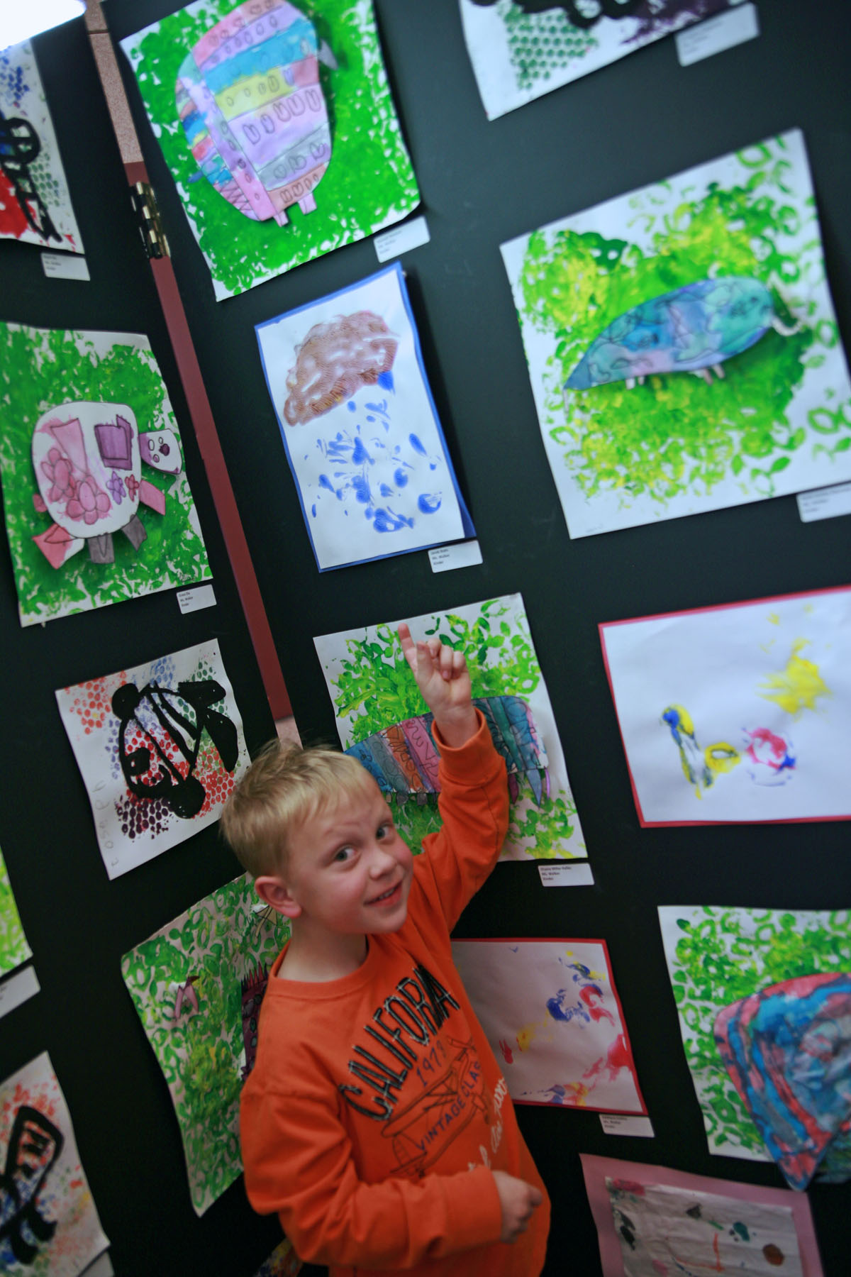 The fourth and fifth graders had their projects on display in the gym where art work from each student was on display as well. Jacob picked his out right away…