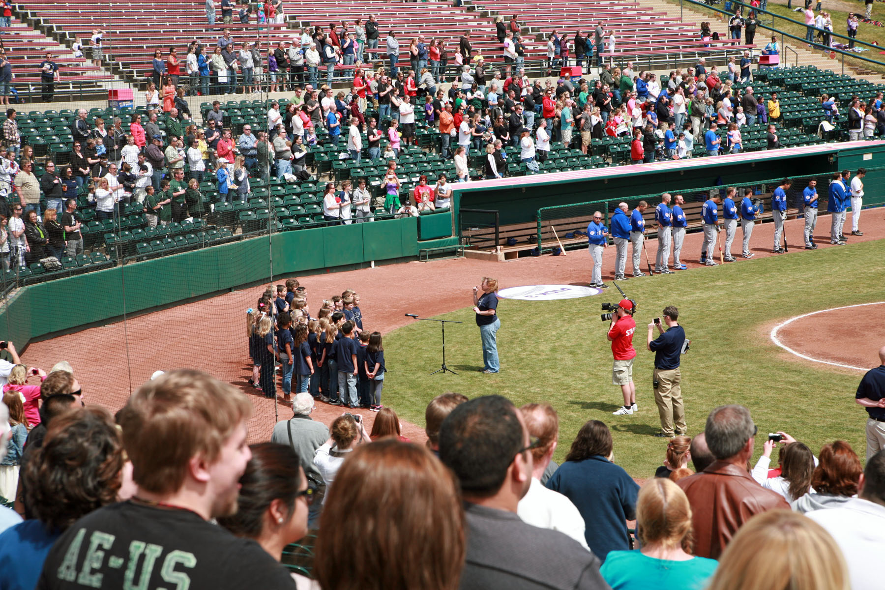 We went to our first SkySox baseball game of the season. Not really to watch the game but to hear a really great choir sing the National Anthem…