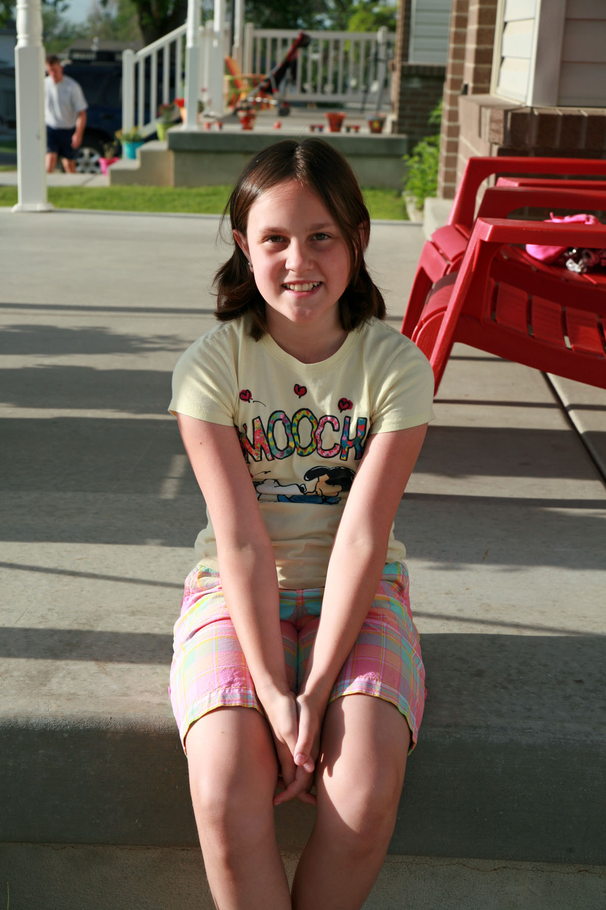 7.  The pictures from our dining out turned out much better.  Apparently the person snapping pictures knew how to use the camera.  This one was from Mazie using my camera in front of our garage…